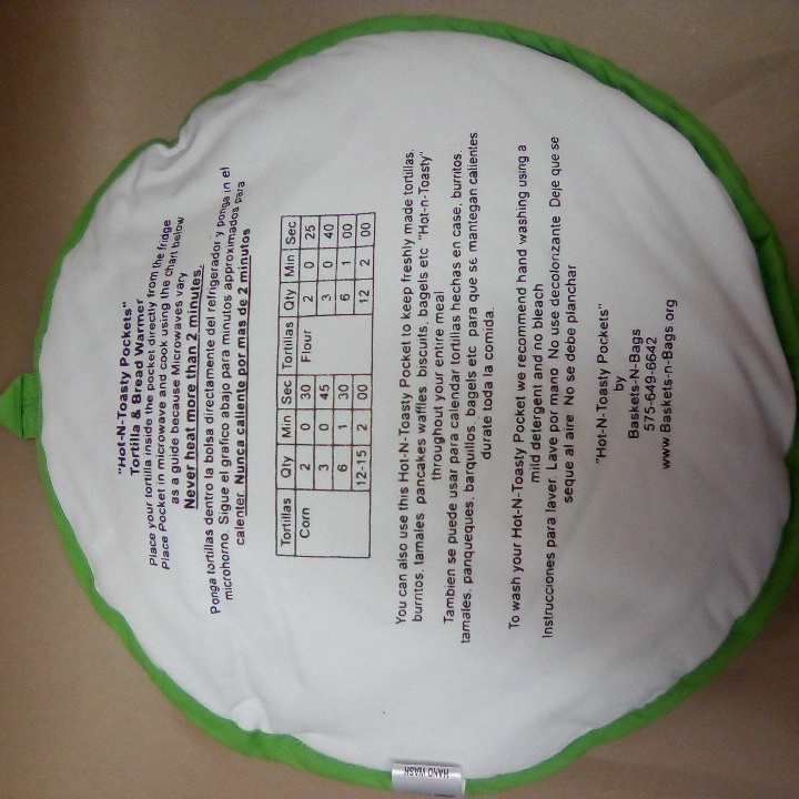 A hot and toasty pocket to keep freshly made tortillas, burritos, tamales, waffles, biscuits, etc. warm while eating.